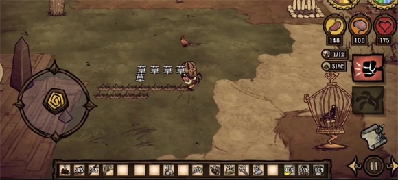 草和树枝属于最基础的资源,在整张地图上几乎随处可见,空手就能采集。当拥有第一根火把后,就可以开启探险之旅了——只要在黑夜降临时手持火把,就不会受到伤害。不过火把是有耐久度的,用完后可以再制作一把。这里有个小技巧:黑夜来临时,能用火把点燃身边的树,这样能节省火把的耐久。开局是秋天,晚上烧一棵落单的树就能度过一夜。需要注意的是,别烧紧挨在一起的森林,否则可能会烧掉整片树林,找单独的树来烧就好。