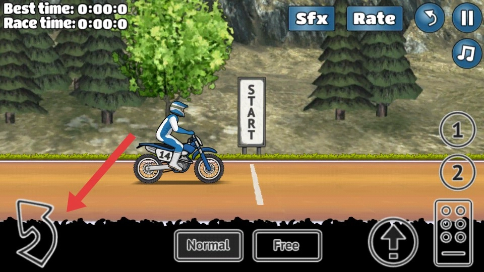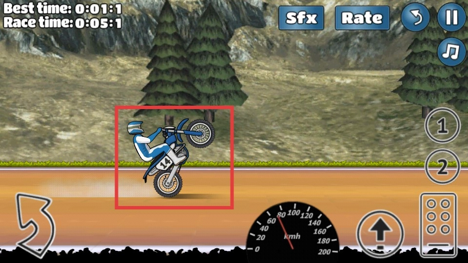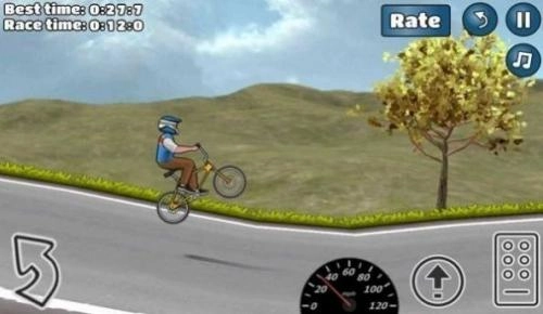 游戏中点击左侧的【油门】按钮,使摩托车开始翘头。