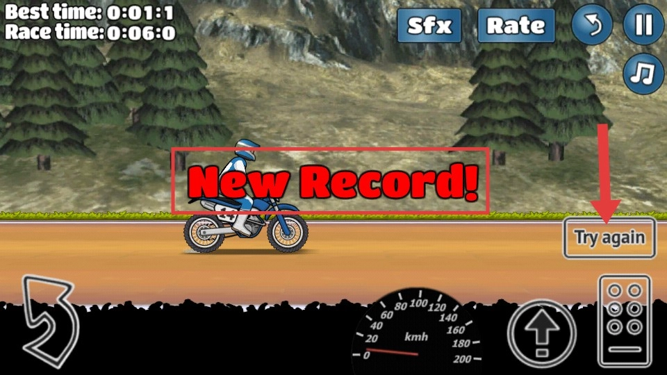 当车头触地后,可点击【Tryagain】按钮重新挑战,争取刷新更优的成绩。