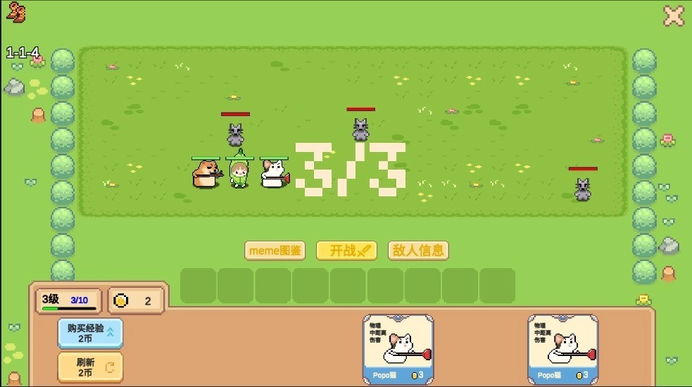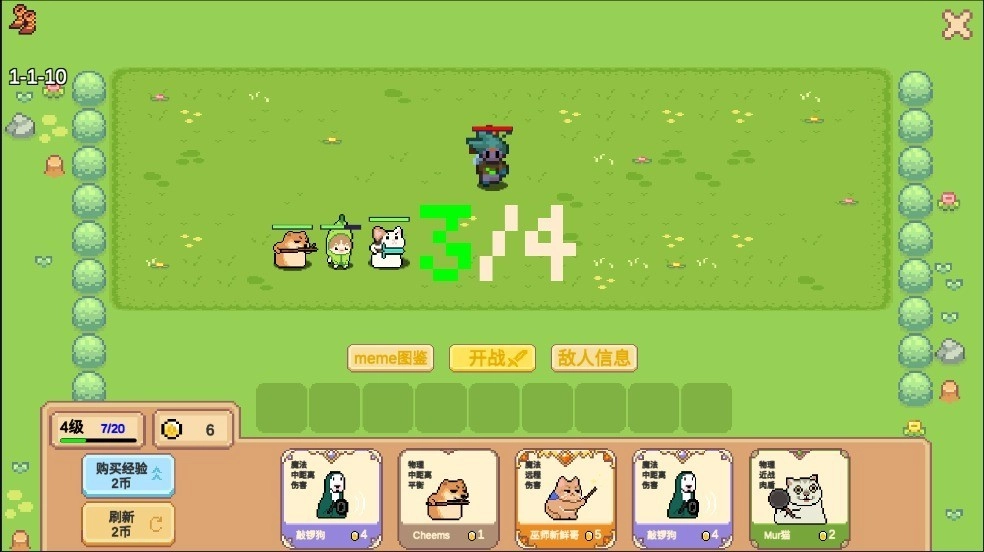 由B站up主“代号皮克嗖儿”独立制作的策略对战游戏《像素猫meme自走棋》,以浓郁的网络亚文化为底色,用像素化风格巧妙平衡了萌系视觉与硬核博弈的体验。游戏收录了海量现实中常见的表情包,无论是当下热梗还是曾经风靡的“过气”梗都能在此找到踪迹,每个表情包还配备了专属的技能树系统。