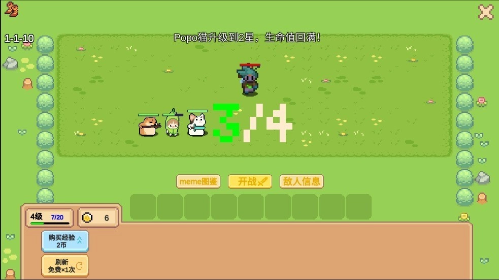 在像素猫meme自走棋游戏里,你得在45秒的决策时间内,依据场上剩余玩家的阵容,灵活调整猫咪的站位、羁绊的搭配和装备的合成,力求让阵容发挥出更强的战力。