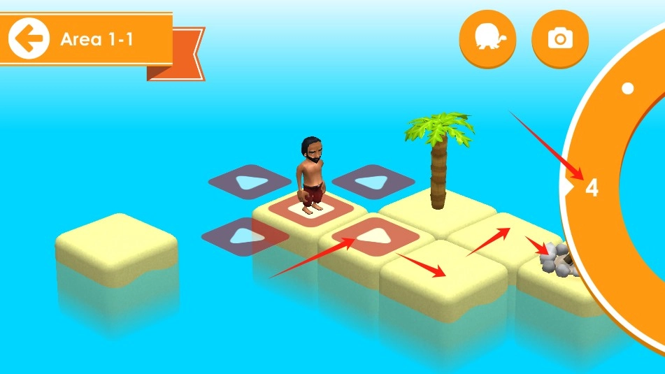 游戏中,这里数字是4,表示要4个步骤到达终点。