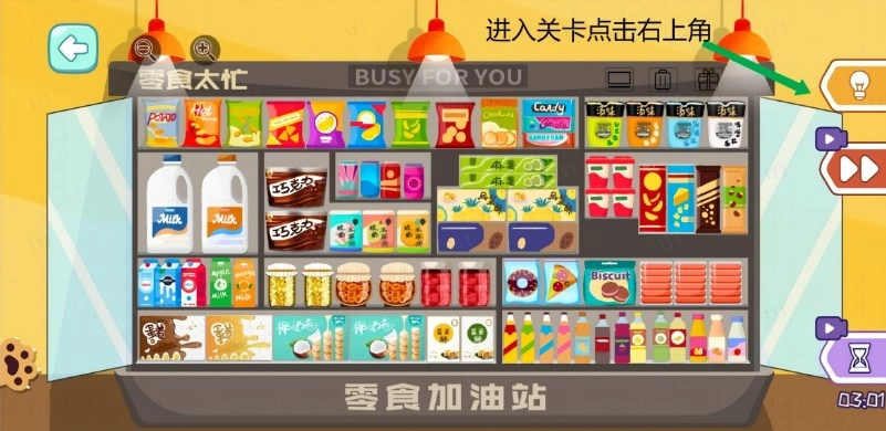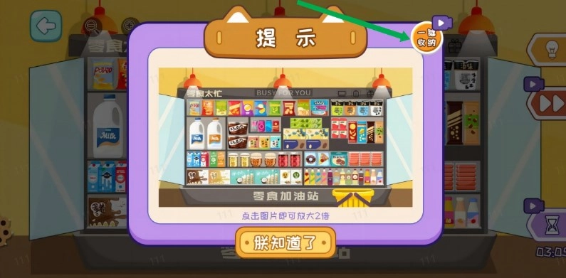 请在右下角的时间结束前完成任务,要是不清楚如何收纳,可点击右上角获取提示。