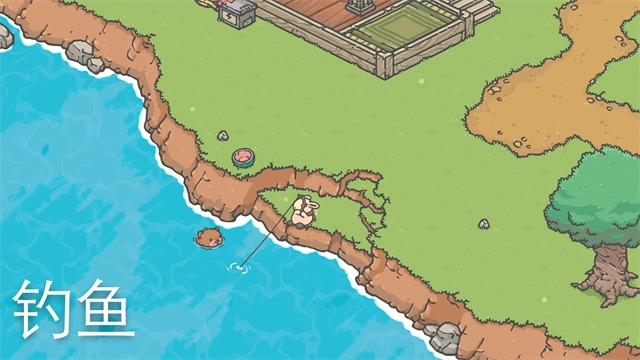 钓鱼:开始前得先买一根鱼竿,然后去湖边垂钓,就能收获各式各样的物品啦。