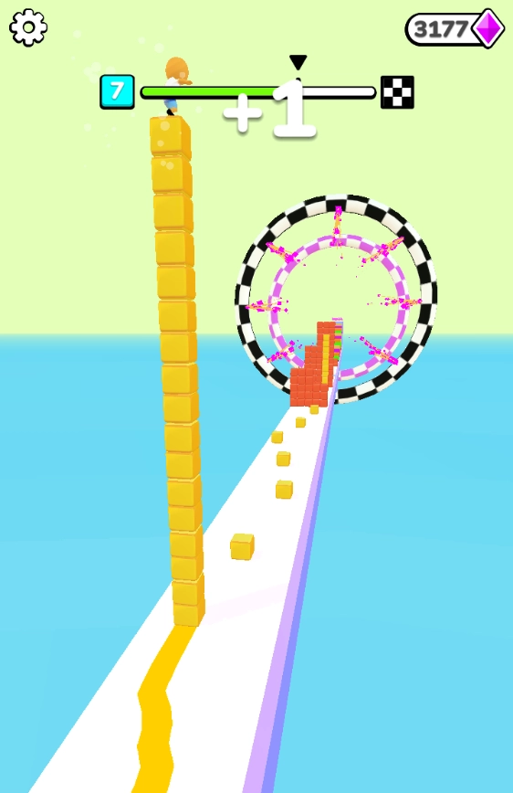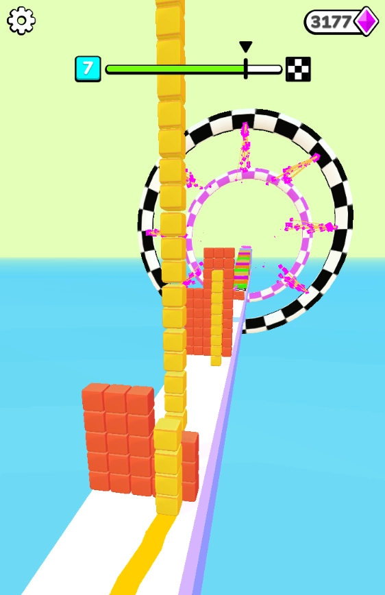在这款游戏里,我们要操控小人持续向前移动,收集相同颜色的方块并将它们堆叠起来,凭借这样的方式去跨越道路上遇到的各类障碍,整个过程既刺激又充满趣味,成功到达终点后,就能依据自身堆叠的高度来获取相应奖励!除此之外,游戏中还设置了多种多样的皮肤可供选择,像小猪、西瓜等造型,让你的挑战之旅变得更加有趣!