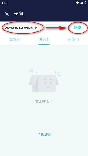 要是时长卡的话,直接点击输入兑换码,再点“兑换”按钮就行啦。