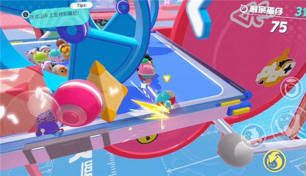 场景里会随机掉落各种道具,让闯关过程充满更多惊喜与趣味。冰冻、电击、泼墨这些技能,都能给对手带来沉重打击,年轻人玩游戏就是要“不走寻常路”嘛!要是捡到传送球、加速鞋、垫脚箱这类道具,用它们就能帮蛋仔更快实现目标,一路冲刺到终点赢下比赛!