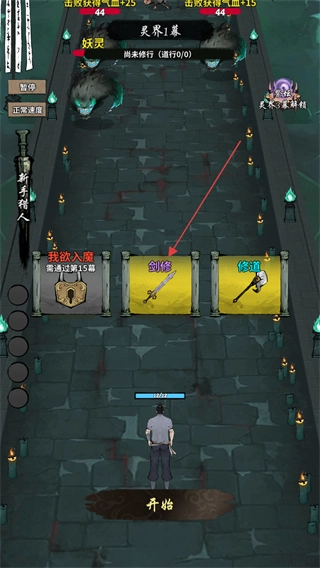 点击下方的开始按钮后,你可以通过左右滑动屏幕,帮助角色从方框内的选项中做出选择,从而进行修行。