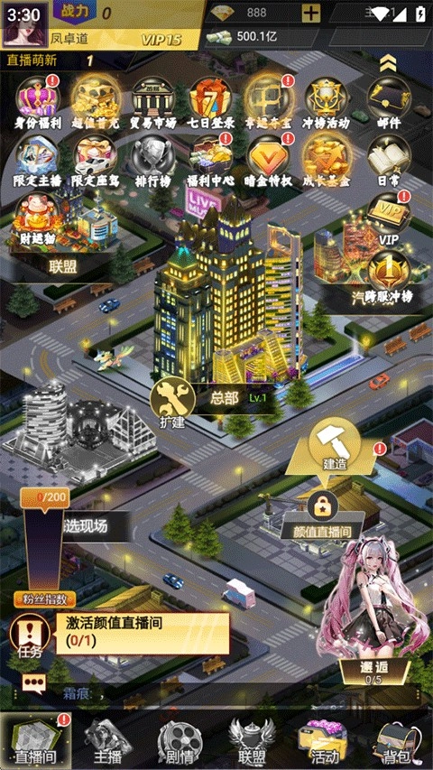 玩家在游戏里化身经营者,打理并壮大专属的直播平台,招募与培育美女主播,提升平台的名气和盈利。