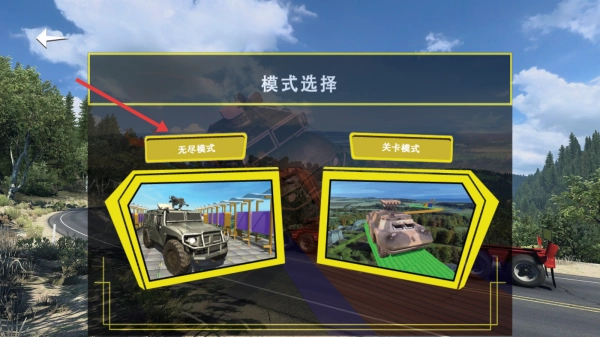 进入模式选择界面后,“无尽模式”很适合用来练习——你可以驾驶卡车在开放的道路上行驶,按照路标和任务指引来运输物资,同时避开各种障碍,这样既能积累驾驶经验,还能赚取金币。