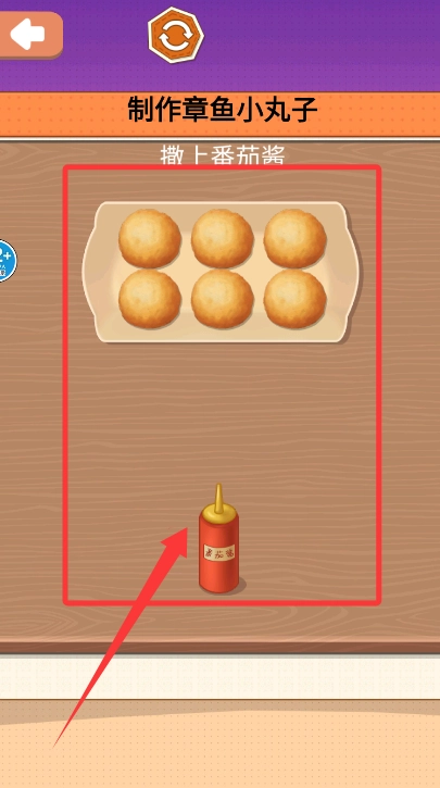 等小丸子的形状固定好后,用竹签翻过来让它定型,最后再挤上酸甜的番茄酱和照烧汁。
