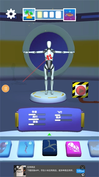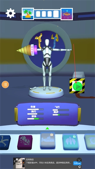 进入克隆机器人大乱斗游戏后,可在下方挑选机器人的装备并进行安装。