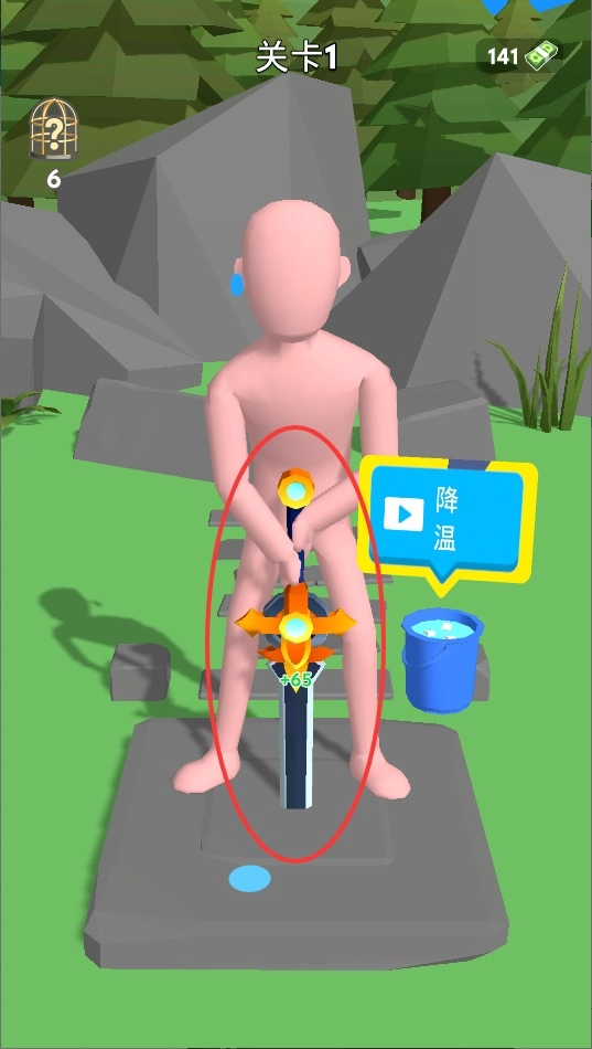 核心玩法为长按屏幕蓄力拔剑,需将力度条控制在安全区间内。力度不足时无法拔出剑,力度过大则会失败,因此需要精准把控力度。
