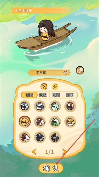 在宗主外观设置界面,当角色名称显示为司空翼时,挑选好衣服等外观选项后,点击界面下方的确认按钮,就能完成当前宗主外观设置的保存操作。