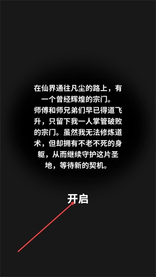 阅读完这段宗门背景剧情后,点击界面上的开启按钮,即可正式进入游戏,开启对这片衰败宗门的管理与守护之旅。