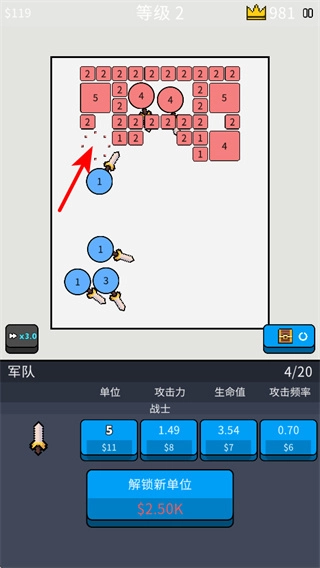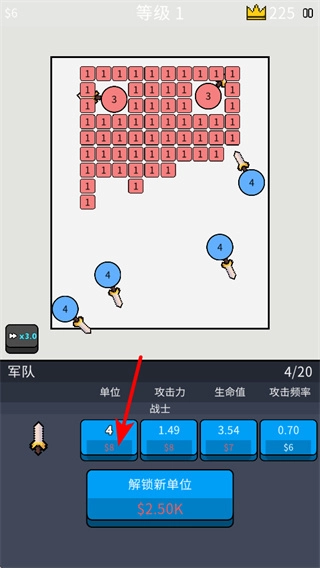 升级单位的攻击力等属性,能够增强其战斗能力,升级过程需要消耗金币,建议优先对核心战斗单位进行升级,以此提升清场效率。