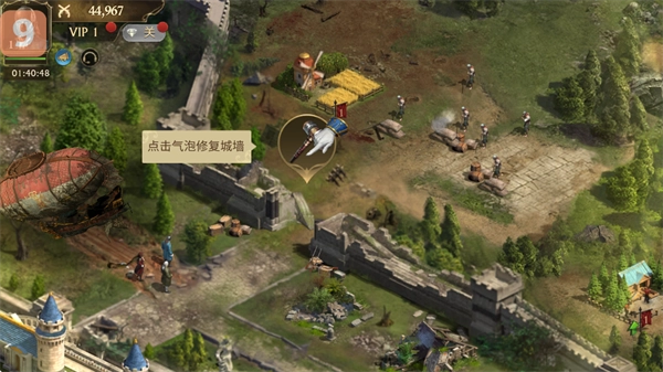 当敌人来袭时,第一步要确认城墙是否完好,点击气泡修复破损处,这样能抵御敌人突袭,保障资源与建筑的安全,稳固防御可是生存的首要前提。