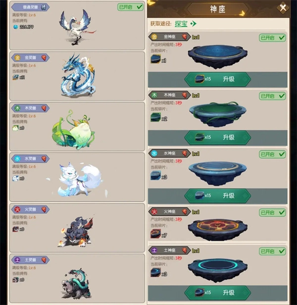 游戏里存在大量灵兽,像普通灵兽以及金木水火土属性的灵兽都包含在内,并且所有这些灵兽都可以持续提升等级。
