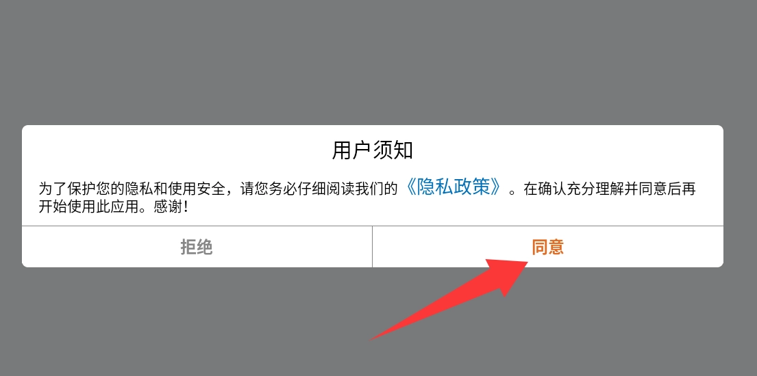 点击用户须知里的同意并进入。