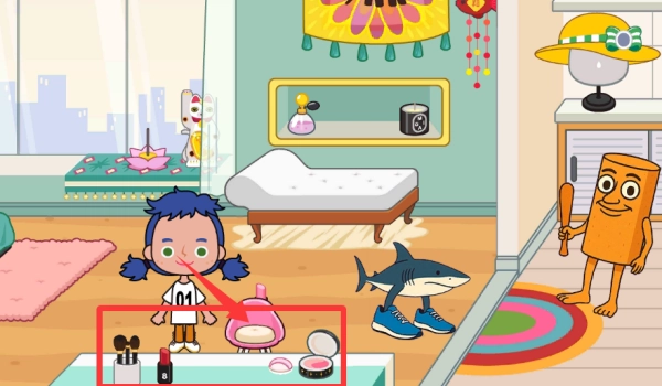 点击移动人物坐过来帮它化个美美的妆。
