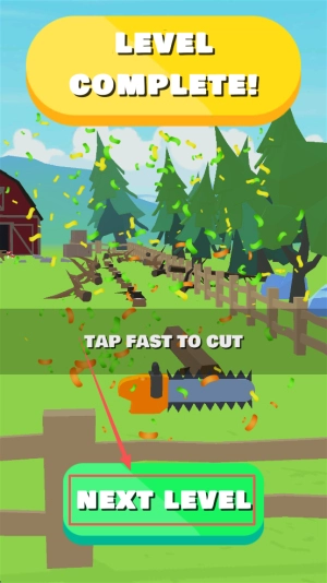 完成关卡通关后会显示“LEVEL COMPLETE! TAP FAST TO CUT”的提示,点击“NEXTLEVEL”按钮即可继续挑战下一关。