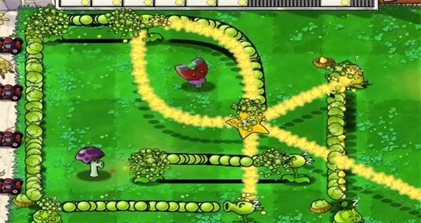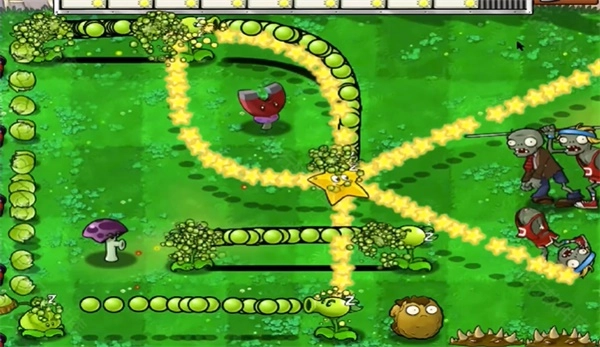 卷心菜投手的攻击轨迹呈向上发射的状态,要是其射击路径上存在其他植物,那么这些植物同样会随之发射子弹。