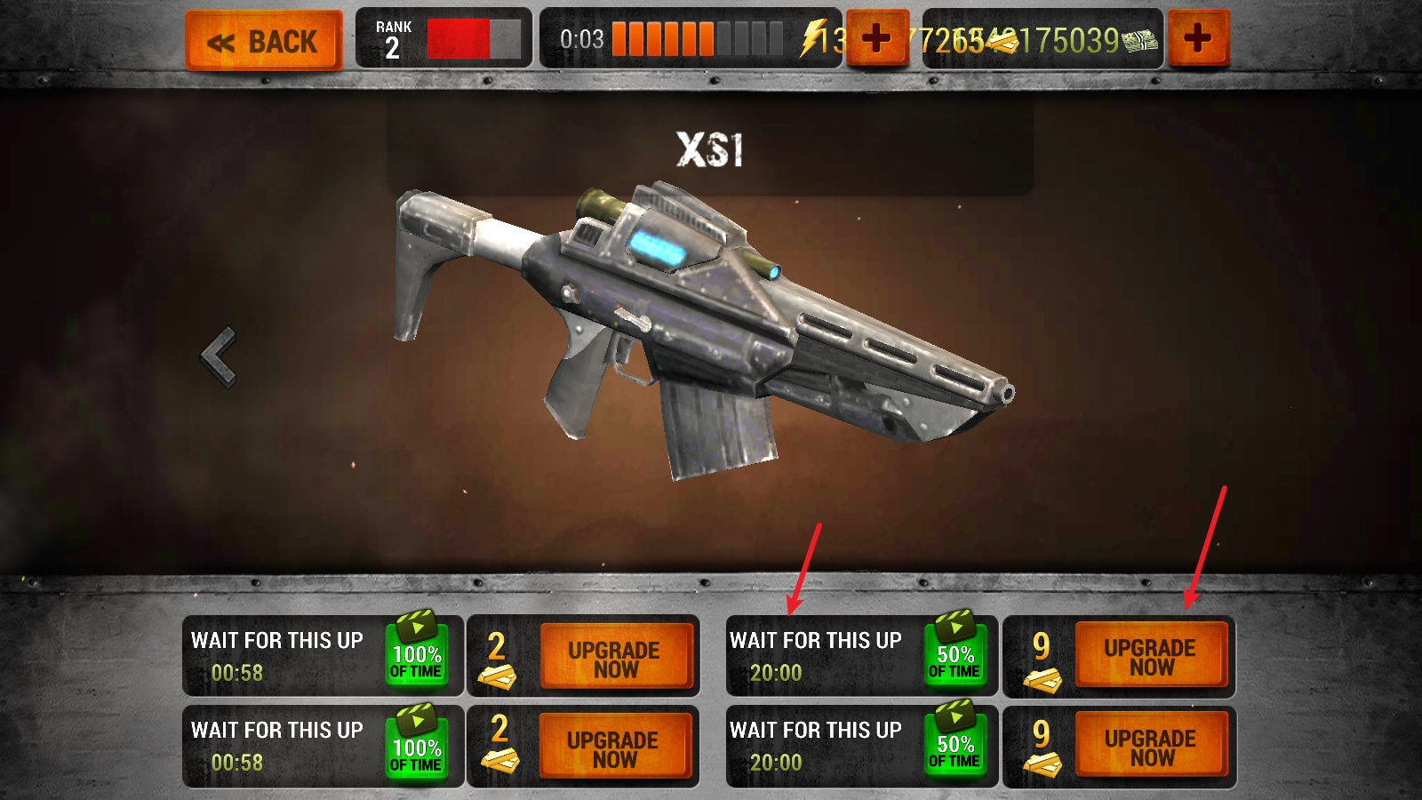 之后进入自己的仓库,还可以对枪械进行升级,不过升级需要花费一定时间。