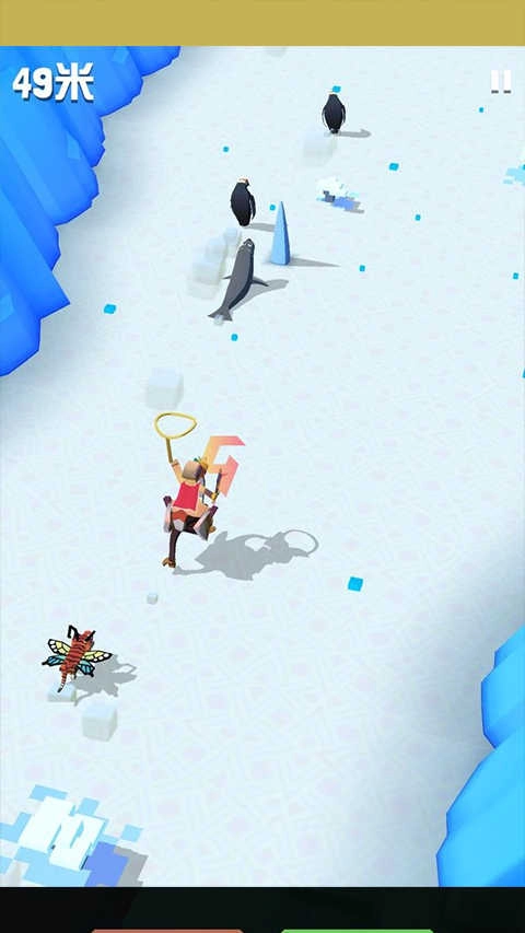 遇到新动物时,先骑着当前动物跑到它身后,松开手指后会落到新动物背上,此时按住屏幕别松开,拖动手指移动来避开前方障碍物,等屏幕里的【红心】进度条填满,就能成功解锁这个新动物啦。