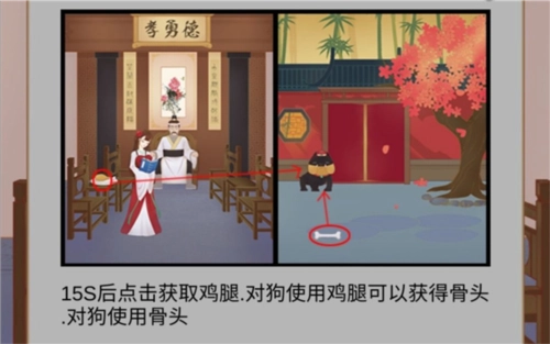 接着去后院把鸡腿喂给狗狗,等它吃完就能得到骨头,最后把骨头搁在狗狗的脑袋上就行啦。