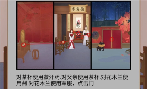 在《花木兰的那些事》游戏里,玩家首先要切换到卧室场景,然后从抽屉中获取胭脂。