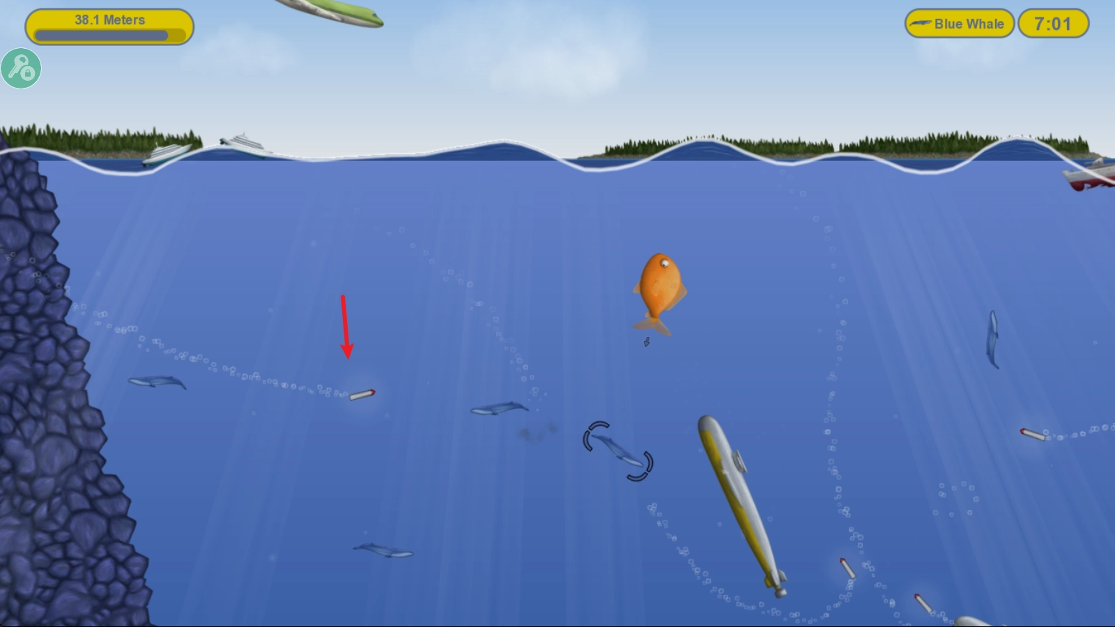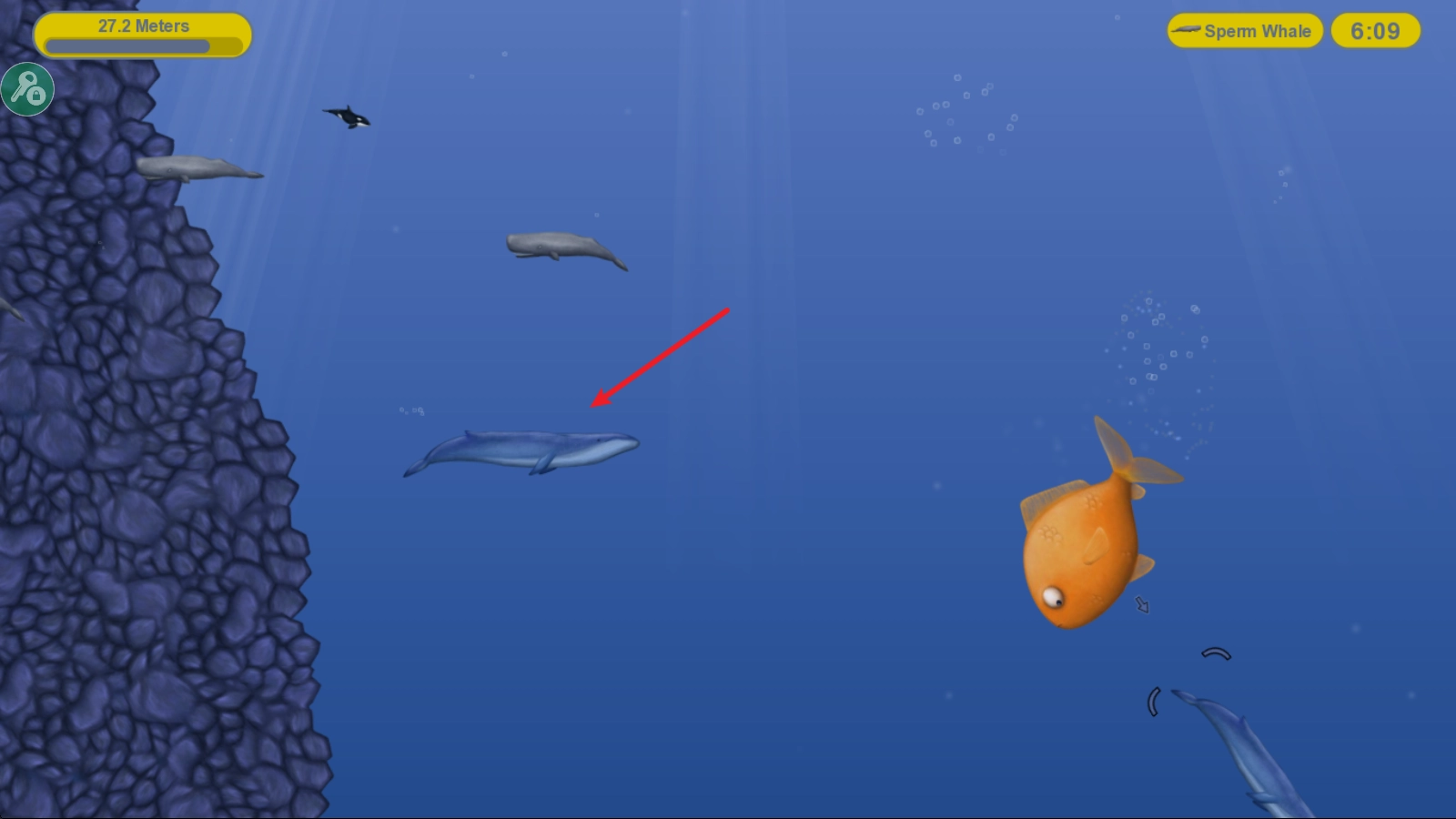 除了主动去捕食猎物外,碰到体型比你大的生物时也得迅速逃离,否则就会受到伤害,影响你的成长。