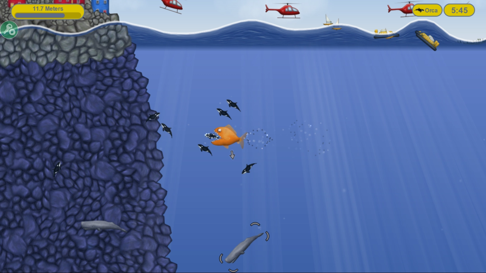 从吞食最细小的鱼饲料起步,一步步地壮大自身的体型,持续吞噬体型更大的猎物,一路攀升至食物链的顶端!