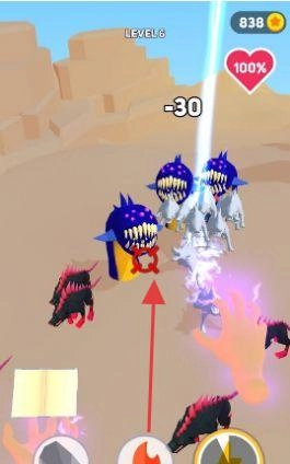 在LEVEL6关卡中,借助手势释放技能,对不同场景里的怪物发起攻击。