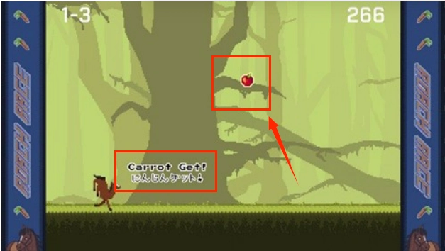 当碰到萝卜道具时,吃掉它就能提升马的速度;而吃掉苹果则可以增加分数。