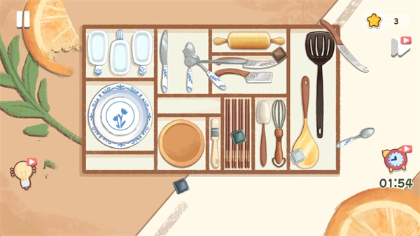 把物品放到对应的位置,简单操作就能通关;轻松的音乐则会带来最舒适的游玩体验。