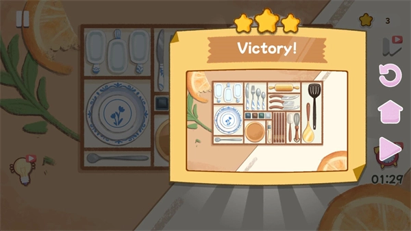当所有的物品全部摆放在正确的位置后就可以通关了。