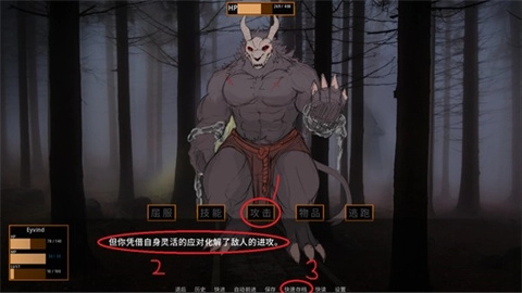 第二步:发起攻击,要是出现暴击或者躲闪的情况,马上点击快速存档,接着继续攻击,直到角色的血量降到30点以下。