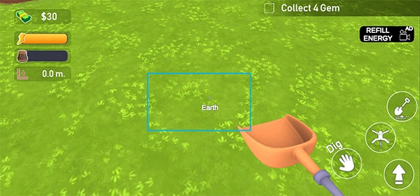 你可以通过点击屏幕或者滑动屏幕来操控角色,让它挖掘土壤、沙石以及岩石层,从而不断地向下掘进。