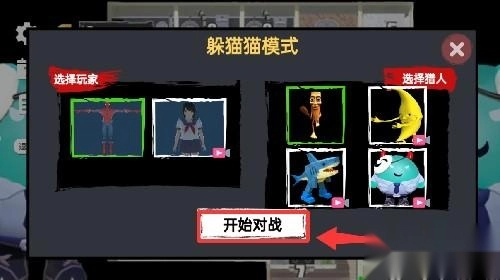 进入游戏模式选择点击第一个躲猫猫模式并进入。