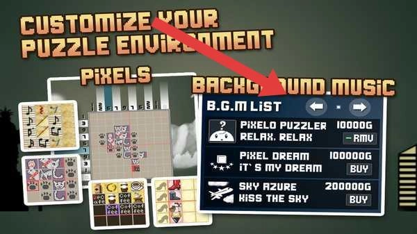 在自定义界面中,进入【BACKGROUND-MUSIC】列表,挑选自己喜欢的BGM(例如“PIXEL-PUZZLER”),以此来设置游戏的背景音乐。