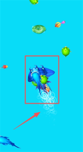 你可以通过手指在屏幕上滑动来操控鱼儿游动的方向,主动去接近那些体型比自己小的海洋生物,把它们吞进肚子里就能获取成长值。