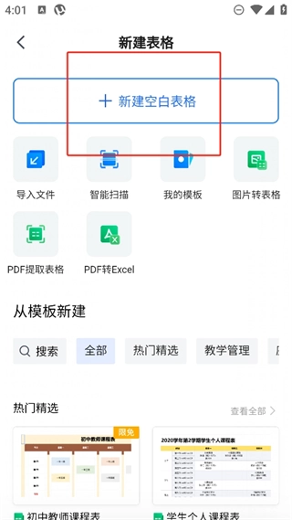 点击新建空白表格。
