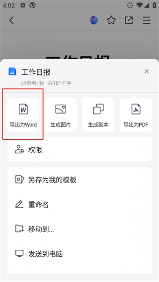 选择导出为word。