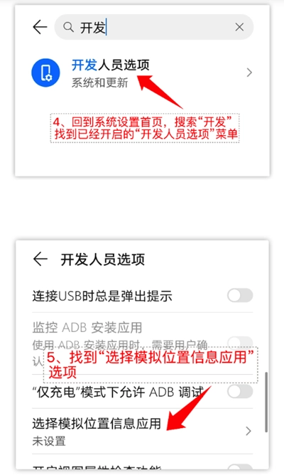 本软件的所有功能均依托于Android系统自带的模拟定位功能。鉴于Android系统的模拟定位选项默认处于关闭状态,因此在使用本软件创建模拟定位之前,请按照下方的步骤一完成设置(该设置仅需操作一次即可)。