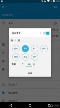 设置好后,一门课程就添加完成了。要是课程只在单周或双周上,那我们只要把前面第三个步骤里的重复选项改成「自定义」,再根据实际情况设成每两周重复一次就行。其他课程也按这个方法来操作,因为添加课程时用了「重复」功能,等我们把第一周的课程表填好,整个学期的课程表其实也就跟着生成了,是不是挺有成就感的?