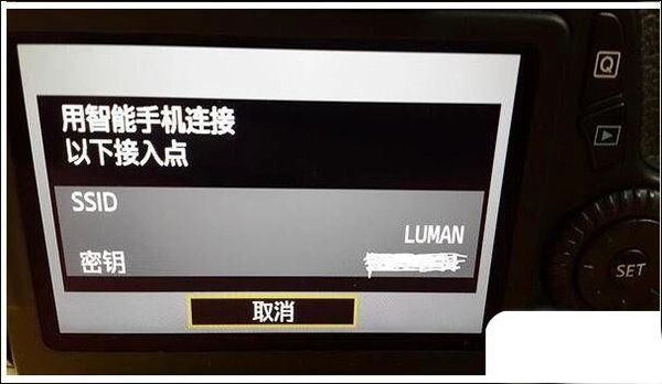 现在进入到当前界面,这里有六个图标,需要选择第一行第二个(带有手机图形的那个),也就是“连接至智能手机”选项。接着在“连接方法”中选择“相机接入点模式”,点击确定;然后在“网络设置”里选择“轻松连接”,再次点击确定。此时界面会显示出SSID和密钥,这便是相机发射的WiFi名称与密码。需要说明的是,这个WiFi仅用于传输照片,无法实现上网功能。