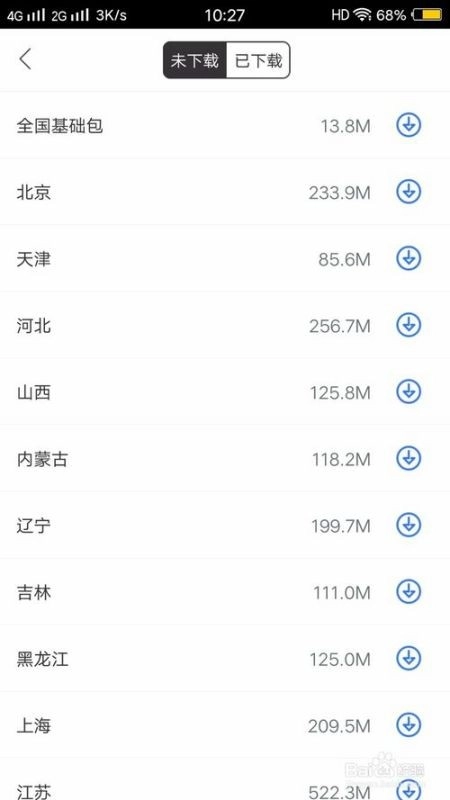 你会发现这里面有很多地区的离线地图包,你可以根据自己所在的位置选择,不过全国包是一定要下载的。只有下载好离线包,才能进行离线导航。