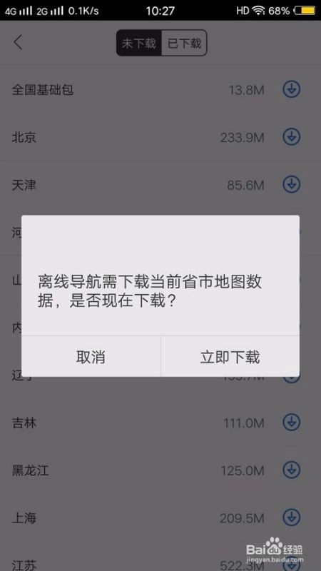 系统会提示你需要各省市的离线包,选择时要在有网络的情况下进行,之后你可以在已选项中找到你的离线包。
