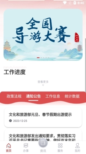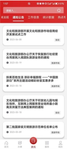 您可以在资讯板块查看政策法规、通知公告、工作信息以及统计数据等内容,具体展示如下: