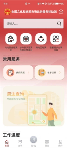 文旅市场通是中华人民共和国文化和旅游部推出的旅游服务软件,也是专门面向国家文化和旅游领域打造的移动端政务平台,其目的是助力文旅部门更高效地开展日常政务工作。该软件涵盖政策资讯发布、行政审批办理、在线培训学习、电子证照应用等服务内容,同时提供营业性演出、跨地区巡演等事项的办理入口,以及通知公告查询、办事进度追踪等功能。